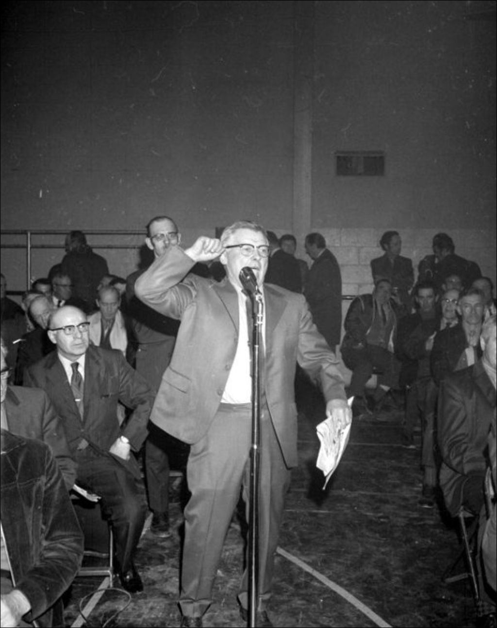 - Nous voyons dans ce dossier Normand Toupin, ministre de l'Agriculture et de la Colonisation, donnant une conférence et accordant une entrevue. On remarque aussi la table d'honneur et l'assistance. Photos commandées par Gilles Marien du ministère des Communications, Service de l'information