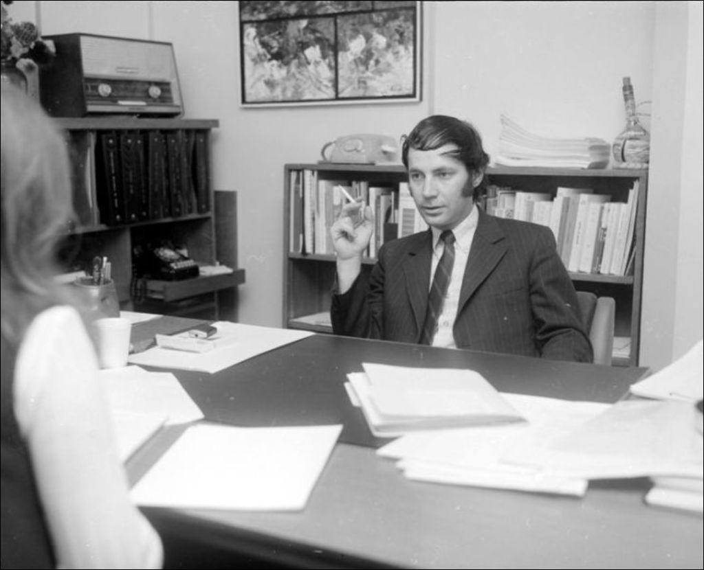 Bureau de Benoit Lauzière. Cégep Maisonneuve. Montréal, 1971, Archives nationales à Montréal, Fonds Ministère de la Culture et des Communications, (06M,E6,S7,SS1,D710451-710451), Henri Rémillard.