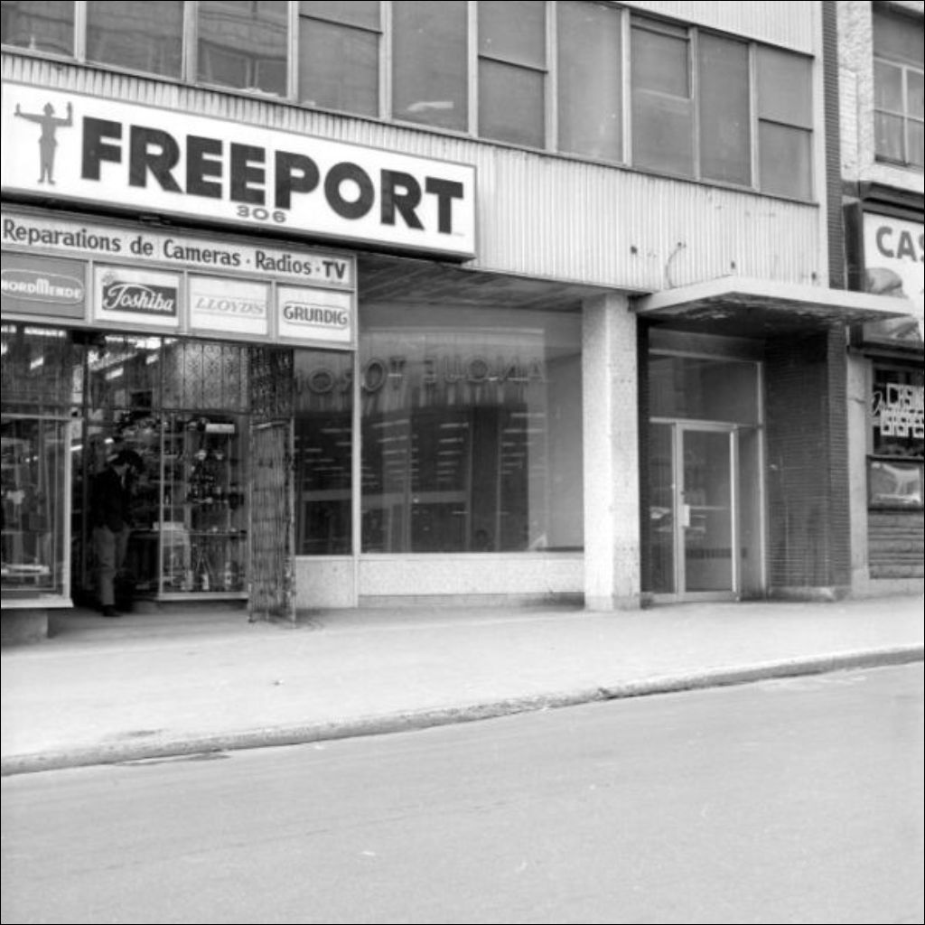 - La vitrine est située entre un atelier de réparations de radios, caméras et téléviseurs Freeport et le Casino gaspésien. Images commandées par madame Masson du ministère des Communications, Service de l'information