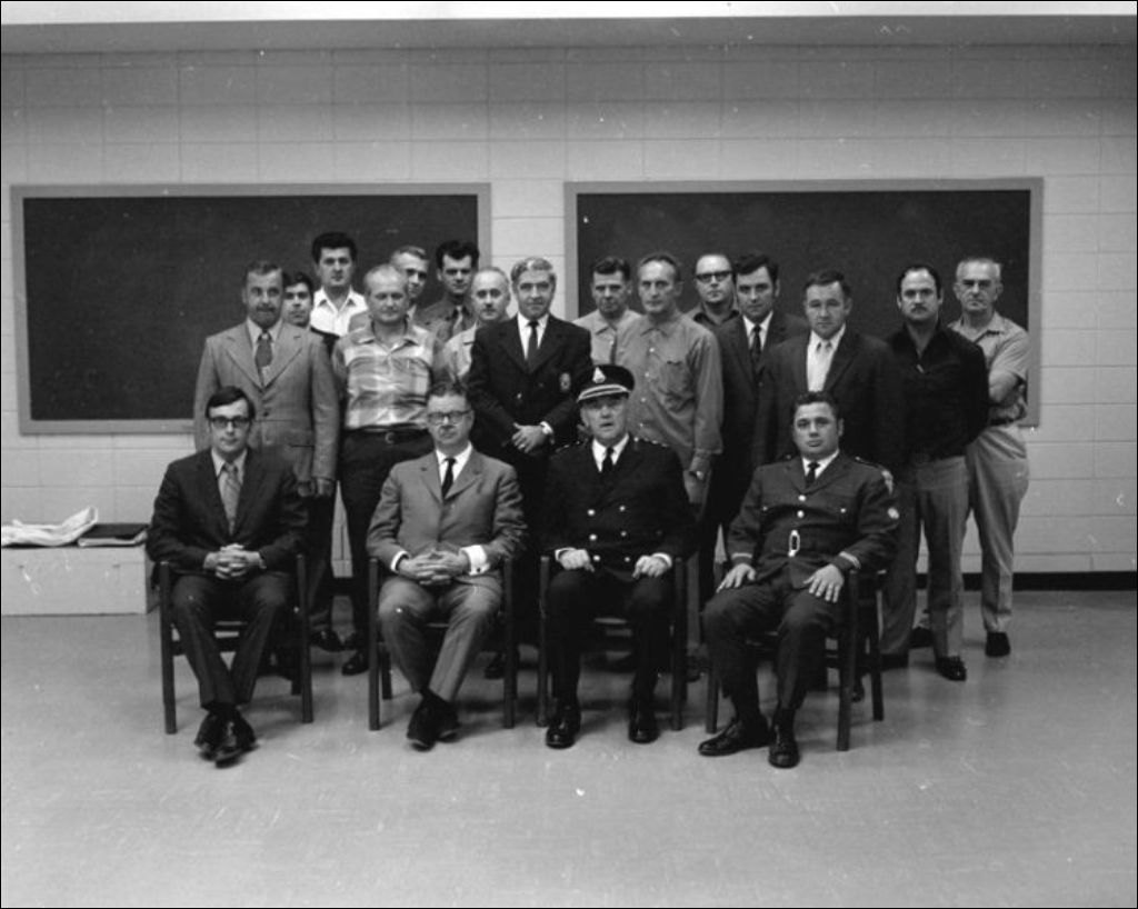 Photo de groupe. Poste de pompiers. Verdun, 1971, Archives nationales à Montréal, Fonds Ministère de la Culture et des Communications, (06M,E6,S7,SS1,D710664-710664), Gilles Langevin.