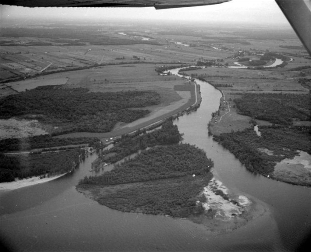 - Clichés de la région de Bécancour. On remarque la centrale nucléaire Gentilly-1, le pont Laviolette, une jetée, un pont et une route en construction, l'armature d'une industrie, un port ainsi que l'aéroport municipal de Trois-Rivières. Images commandées par Jacques Lannoye du ministère de l'Industrie et du Commerce, Société du parc industriel du Québec