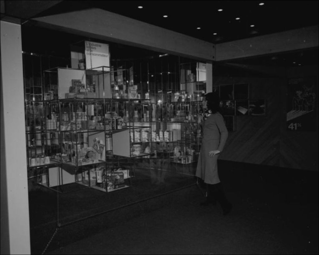 Photographie du kiosque du ministère de l'Agriculture au Salon de l'avenir à la Place Bonaventure. Montréal, 1971, Archives nationales à Montréal, Fonds Ministère de la Culture et des Communications, (06M,E6,S7,SS1,D712085-712090), Adrien Hubert.