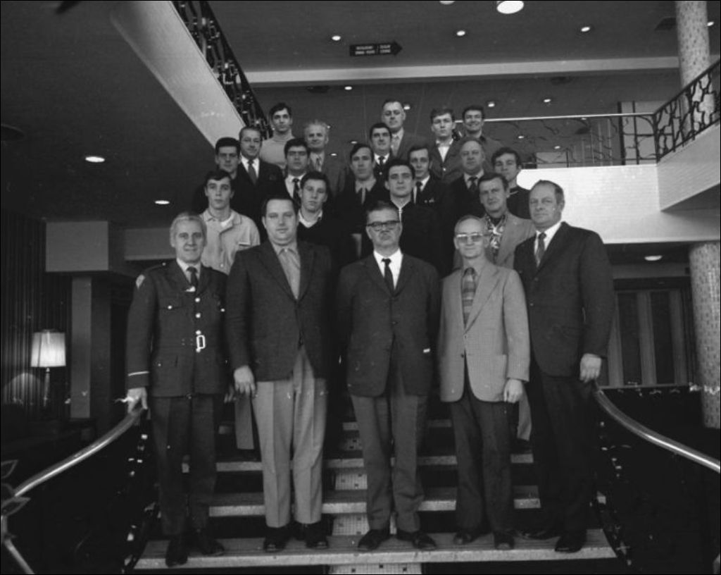 Photo de groupe. Hôtel Cardinal, Pointe-aux-Trembles, 1971, Archives nationales à Montréal, Fonds Ministère de la Culture et des Communications, (06M,E6,S7,SS1,D712570-712570), Gilles Langevin.