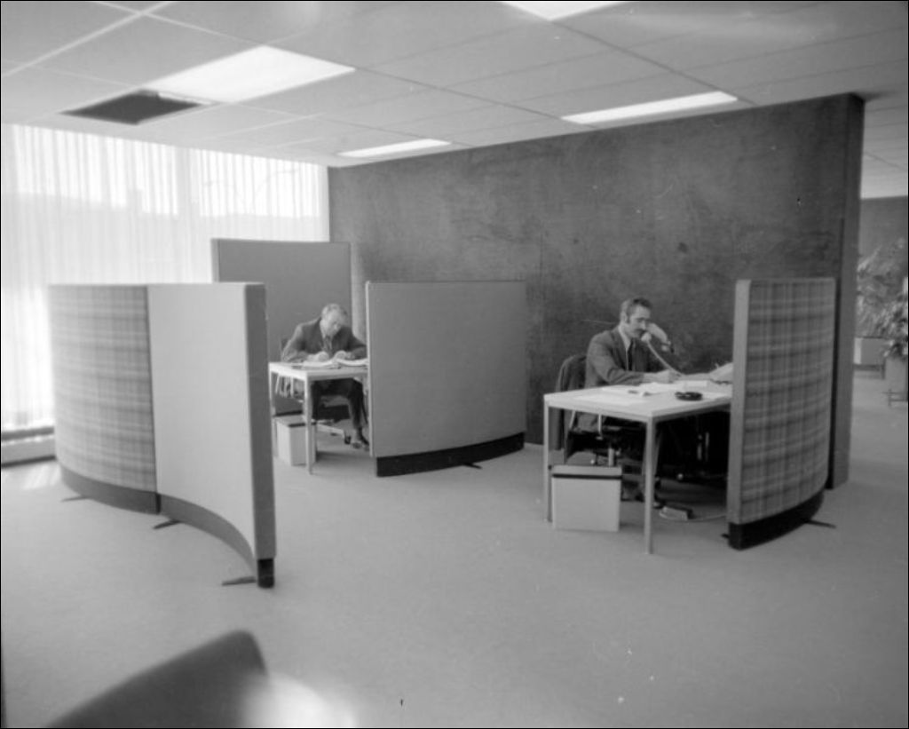 - Employés photographiés à leur poste de travail dans les bureaux de la Régie des rentes du Québec. Clichés commandés par M. Tanguay de la Régie des rentes du Québec