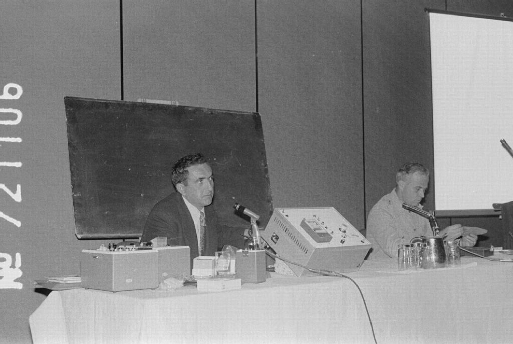 - Pendant le congrès du Canada Safety Council, on remarque les conférenciers. Dans le terrain de stationnement de la Place Bonaventure, les congressistes assistent à une démonstration donnée par un mécanicien sur la manipulation des pinces de décarcération. Enfin, une auto patrouille fait partie de l'exposition. Dossier réalisé pour Jean-Paul Kingsley du ministère des Transports