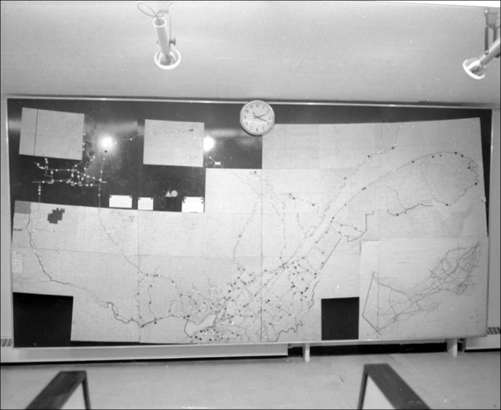 Clichés montrant le bureau de la voirie, certains équipements ainsi que des employés au travail. Images faites à la demande de Jean Lemelin du ministère de la Voirie, Service de l'information