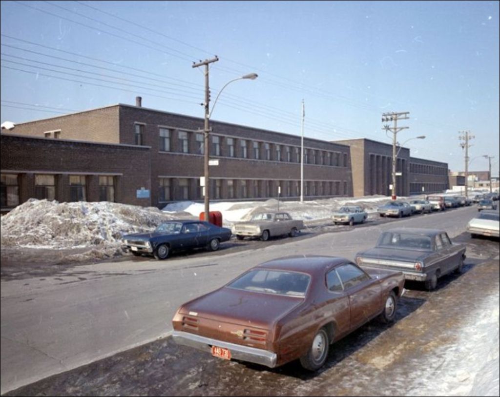 Extérieur de l'édifice de la Commission des accidents du travail. Montréal, 1973, Archives nationales à Montréal, Fonds Ministère de la Culture et des Communications, (06M,E6,S7,SS1,D730189-1-730194-1), Adrien Hubert.