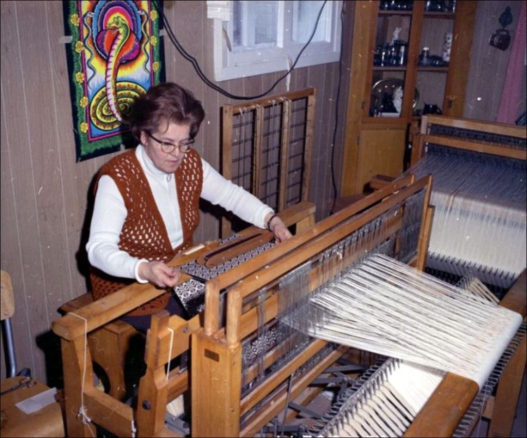 - Gens travaillant sur des métiers à tisser (basse lisse). Images faites à la demande de Michèle Josse du ministère de l'Éducation, Service du Multi-média