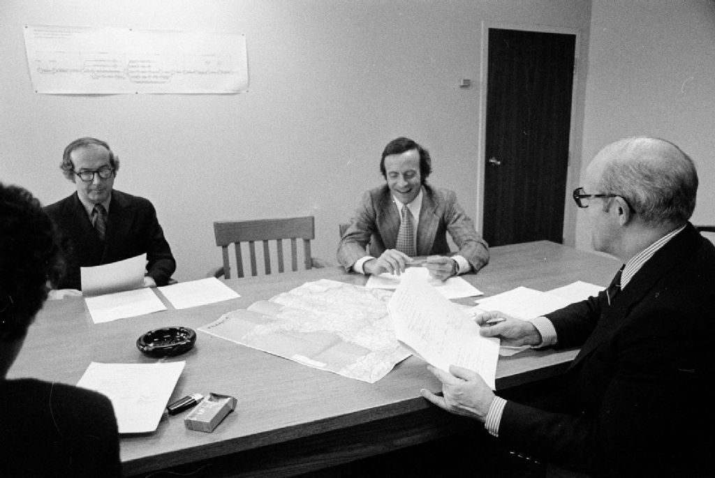 Office de la langue française. Groupe de travailleurs. 555, boulevard Dorchester ouest, 11e étage, Montréal, 1973, Archives nationales à Montréal, Fonds Ministère de la Culture et des Communications, (06M,E6,S7,SS1,D730584-730584), Henri Rémillard.
