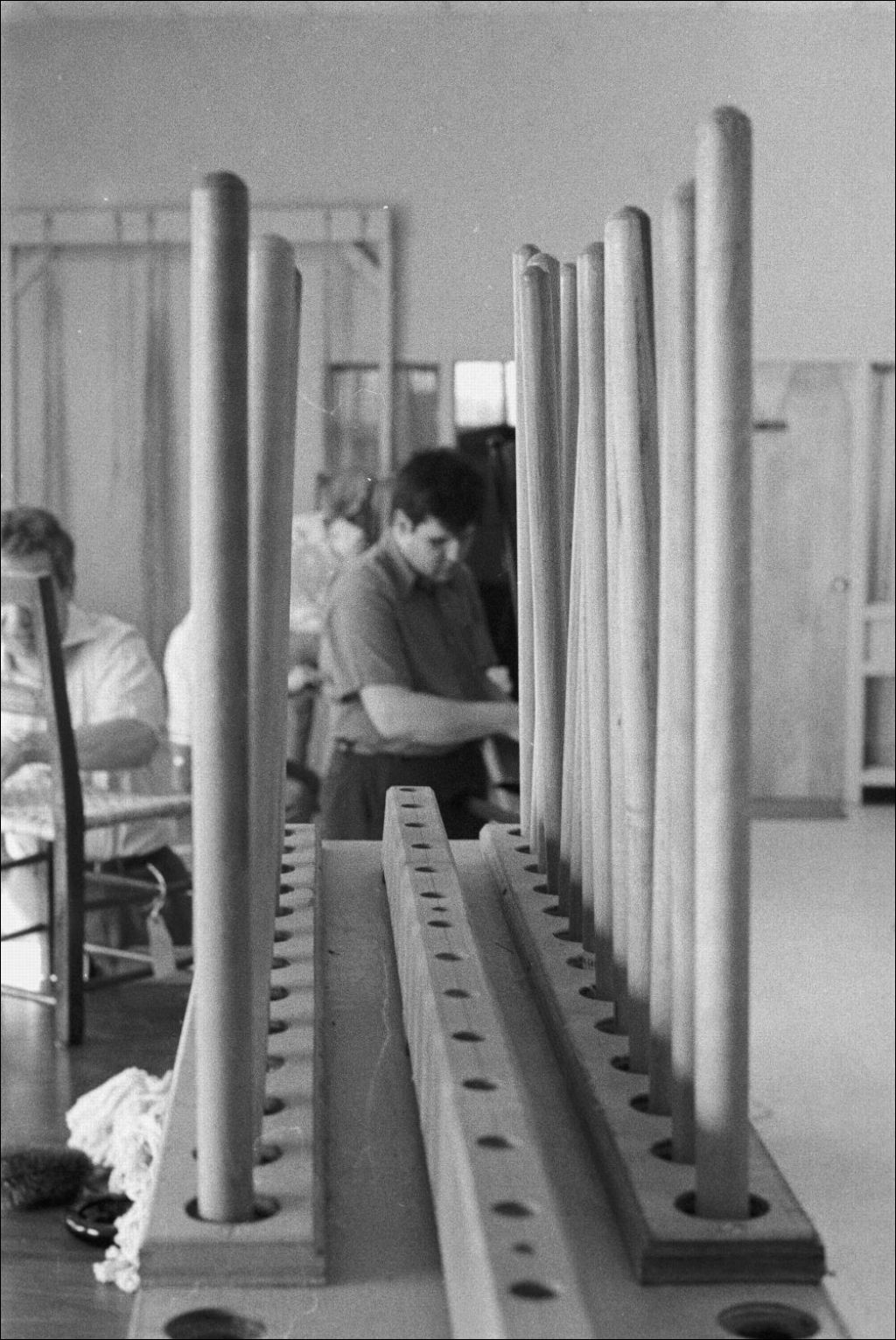 - Menuisiers affectés à la construction des décors d'une pièce jouée au TNM. Photos commandées par Paul Girard du ministère des Affaires culturelles
