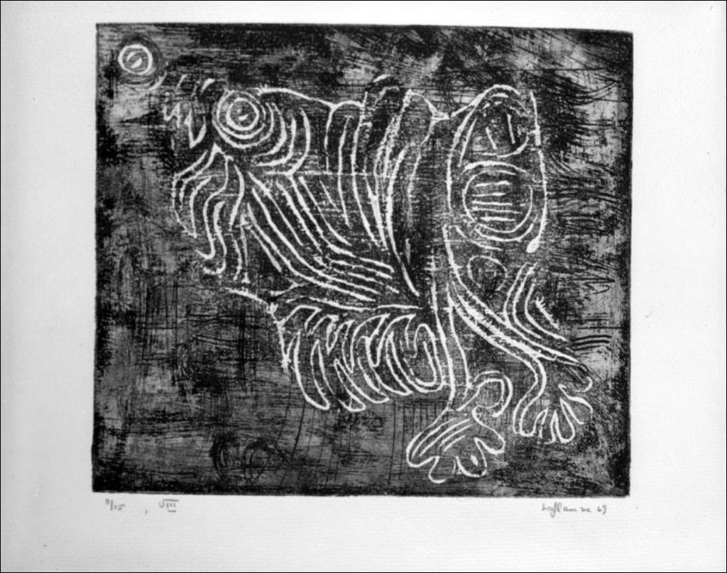 Ces photos représentent quelques réalisations de l'artiste. Hélène Laflamme est peintre graveur. Images réalisées à la demande de Claude Haeffely du ministère des Affaires culturelles