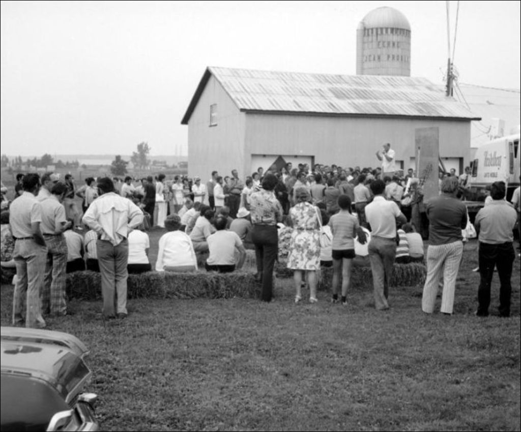 - Nous pouvons voir sur ces images les bâtiments de la ferme ainsi que des gens réunis. Photographies commandées par Thierry Mennesson du ministère de l'Agriculture, Service de l'information