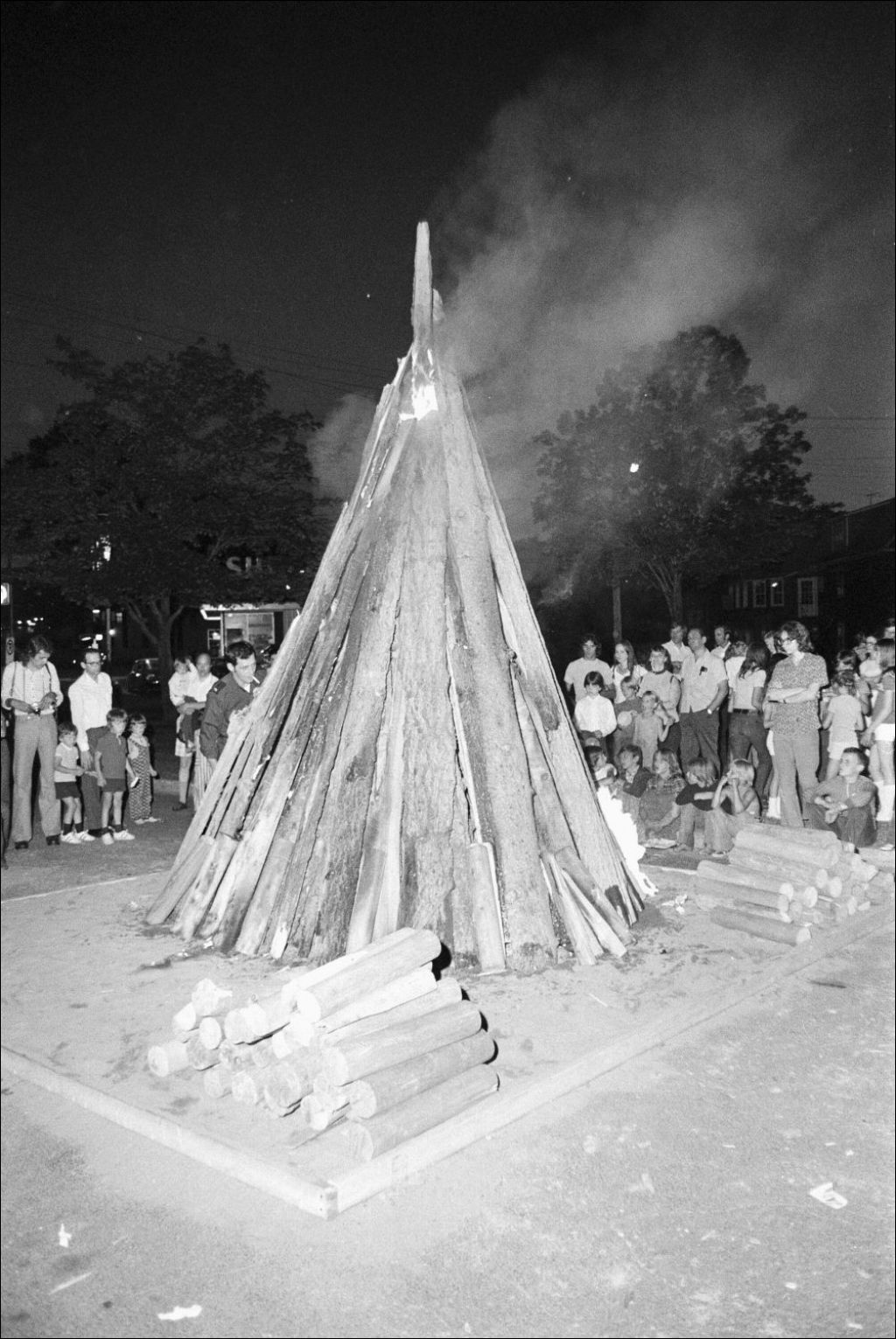 - Compétition de sciage de bois et de saut en parachute. Un jeune sportif allume le flambeau des Jeux du Québec en Outaouais. Images commandées par Martin Pronovost du ministères des Communications