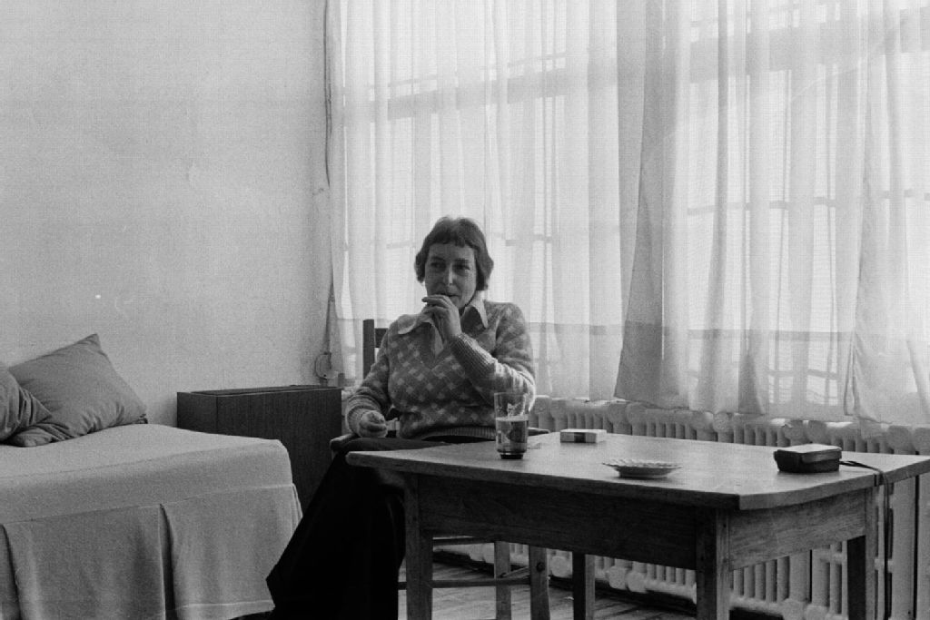 Angèle Beaudry, artiste peintre. Boulevard Saint-Laurent, Montréal, 1974, Archives nationales à Montréal, Fonds Ministère de la Culture et des Communications, (06M,E6,S7,SS1,D740363-740363), Henri Rémillard.