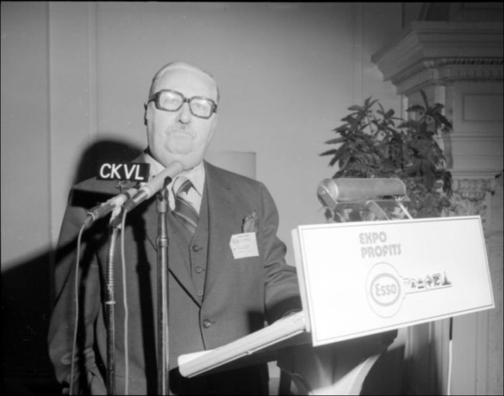 Inauguration de l'expo-profits Esso avec Guy Saint-Pierre, ministre de l'Industrie et du Commerce. Hôtel Windsor. Montréal, 1974, Archives nationales à Montréal, Fonds Ministère de la Culture et des Communications, (06M,E6,S7,SS1,D740750-740761), Henri Rémillard.