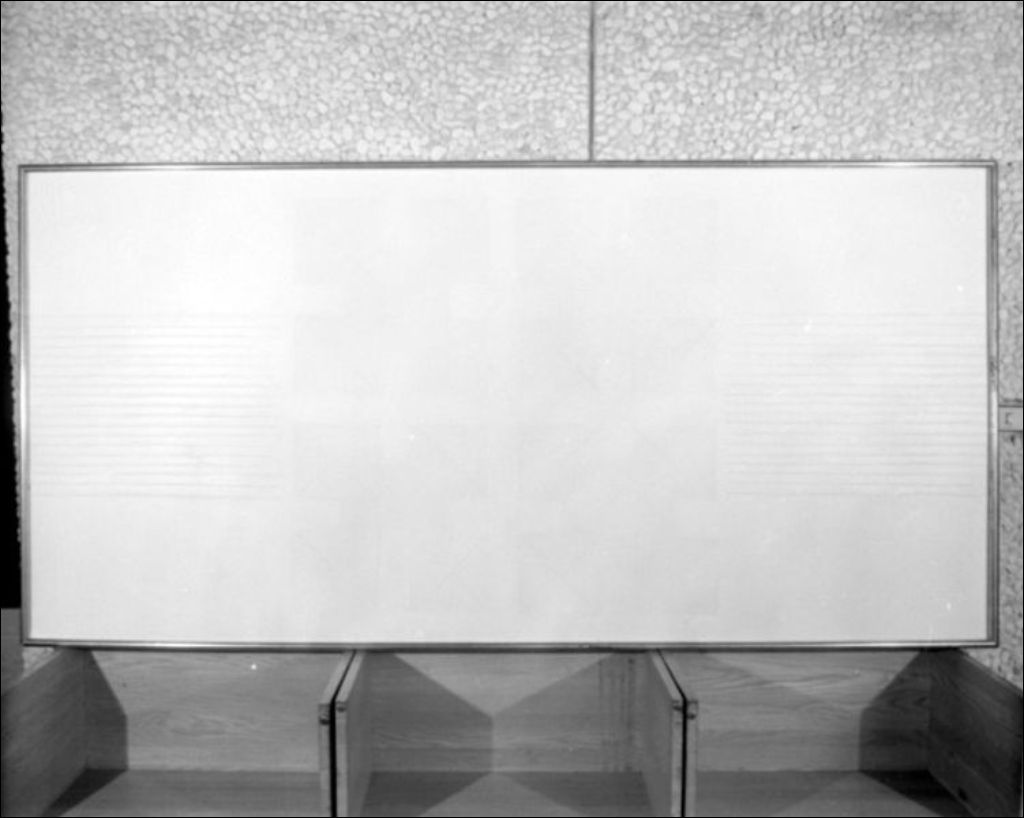Tableau photographié au musée d'Art contemporain. Montréal, 1974, Archives nationales à Montréal, Fonds Ministère de la Culture et des Communications, (06M,E6,S7,SS1,D742183-742183), Adrien Hubert.