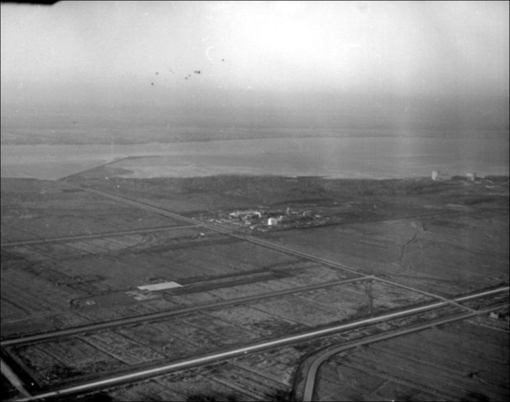 - Vue aérienne du parc industriel de Bécancour. On distingue notamment l'usine de produits chimiques industriels de la Canadian Industries Limited (CIL), la centrale nucléaire de Gentilly et une jetée. Photos commandées par Jacques Lannoye du ministère de l'Industrie et du Commerce, Service des parcs industriels