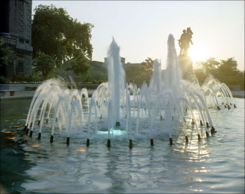 - Les photographies illustrent quelques lieux historiques du Vieux-Montréal. Entre autres, la basilique Notre-Dame, le gratte-ciel de la New-York Life Insurance et l'édifice Alfred donnant sur la place d'Armes. On voit l'hôtel de ville avec sa fontaine, l'ancien Palais de justice sur la rue Notre-Dame et les écuries d'Youville