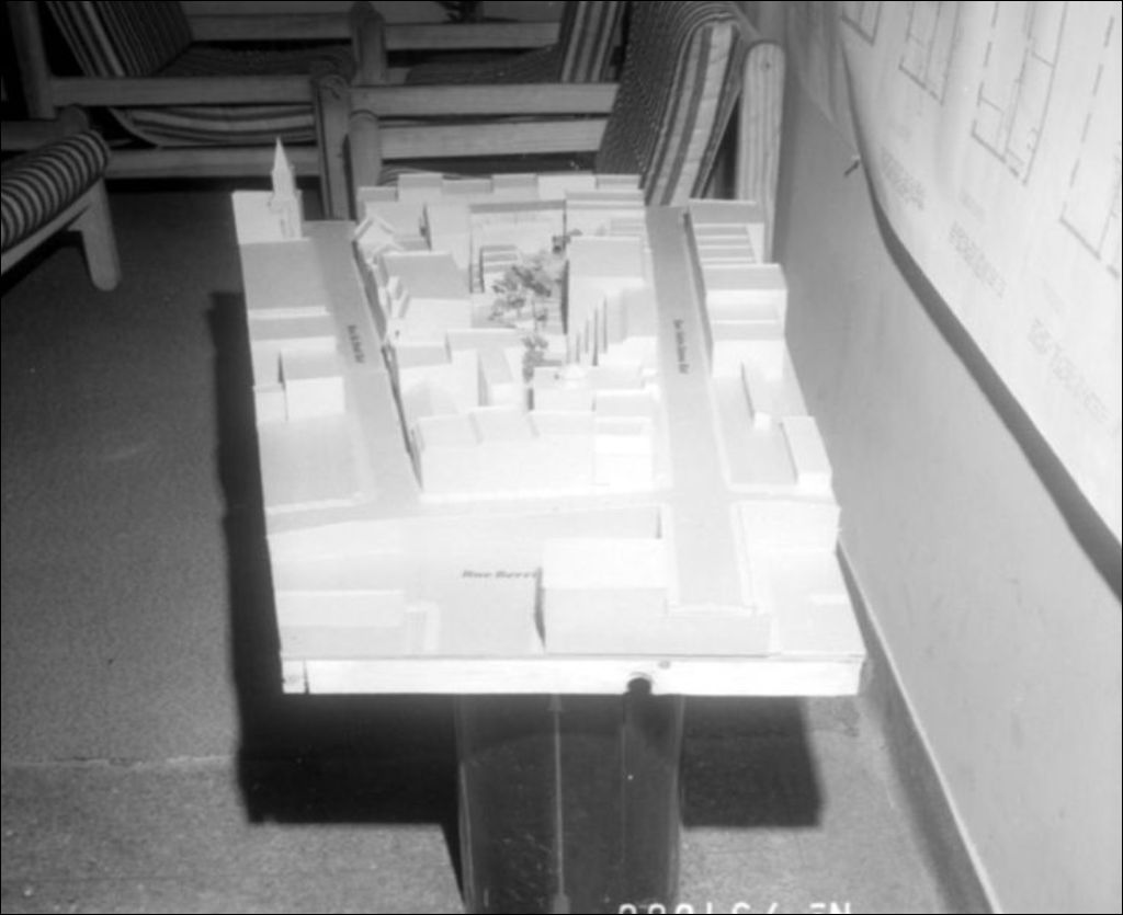 - Les photographies montrent des maquettes et des plans représentant les projets Gésu et Youville. Ceux-ci sont présentés à l'Université McGill. Ces clichés ont été commandés par madame Bonin Guérin du ministère des Affaires culturelles, Commission des bien culturels