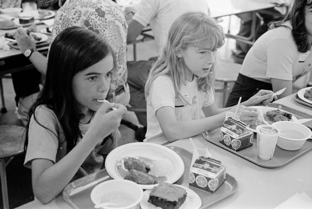 - Nous voyons des enfants au gymnase et à la cafétéria. De plus, nous remarquons les orateurs et une table ronde. Ces images ont été demandées par Nicole Saint-Jacques du ministère de l'Éducation, Service de multi-média