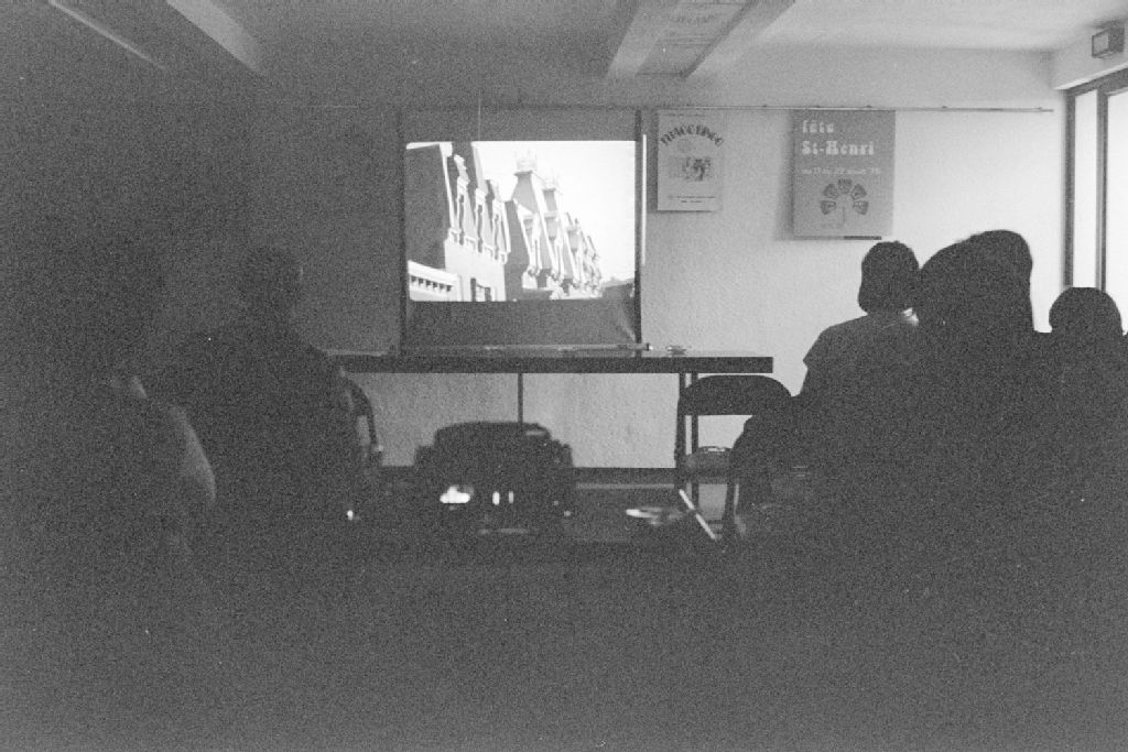 - Nous voyons un orateur. De plus, il y a présentation de diapositives. Ces images ont été demandées par Raymond M. Léger du ministère des Affaires culturelles, Office du film du Québec