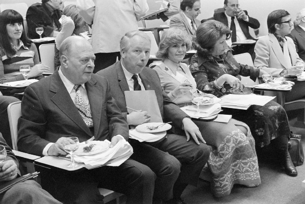 Concours de dégustation de mets par les étudiants de l'Institut de tourisme et d'hôtellerie du Québec. 400,rue Saint-Denis, Montréal, 1975, Archives nationales à Montréal, Fonds Ministère de la Culture et des Communications, (06M,E6,S7,SS1,D752867-752868), Gilles Langevin.