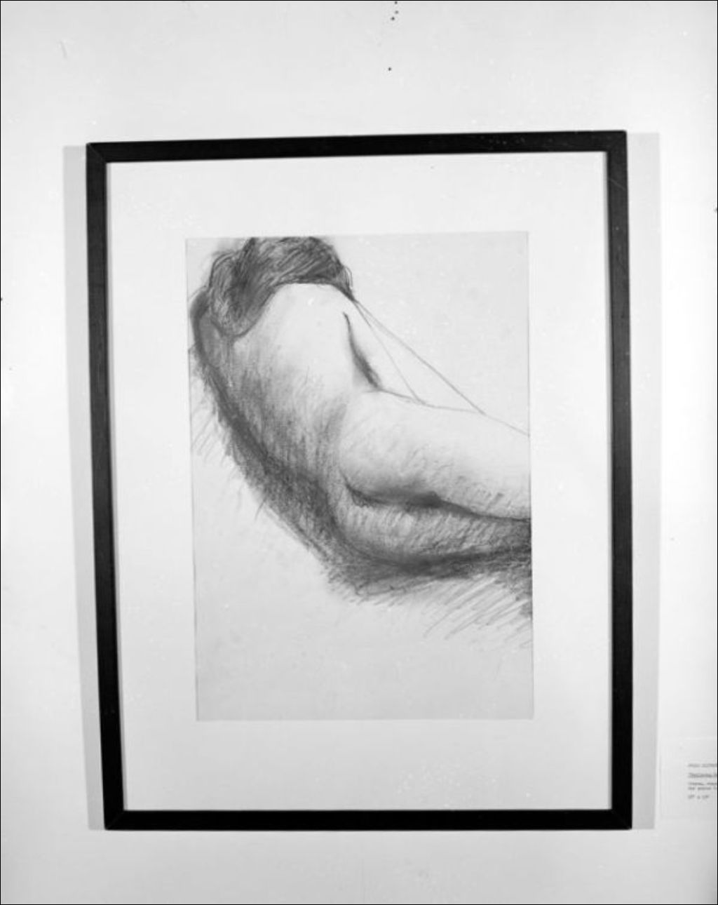 - Les photographies montrent plusieurs oeuvres de l'artiste dont Nudes I (E6,S7,SS1,P752987); Nudes II (E6,S7,SS1,P752995); Seated Nude (E6,S7,SS1,P752986 et E6,S7,SS1,P752993); Head (E6,S7,SS1,P752986); Standing Nude from The Back (E6,S7,SS1,P752995); Nude Leaning on Her Hands (E6,S7,SS1,P752984); Nude from The Back Looking Left (E6,S7,SS1,P752984) et Reclining Nude from The Back (E6,S7,SS1,P752980, E6,S7,SS1,P752981, E6,S7,SS1,P752988 et E6,S7,SS1,P752991). Ces négatifs ont été commandés par Françoise Cournoyer du ministère des Affaires culturelles, Service du musée d'Art contemporain