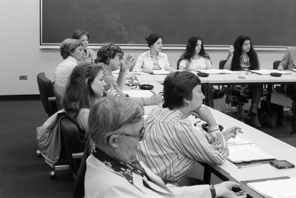 Réunion du personnel du Service immobilier de Montréal et Québec. Complexe Desjardins, Montréal, 1976, Archives nationales à Montréal, Fonds Ministère de la Culture et des Communications, (06M,E6,S7,SS1,D761968-761968), Henri Rémillard.