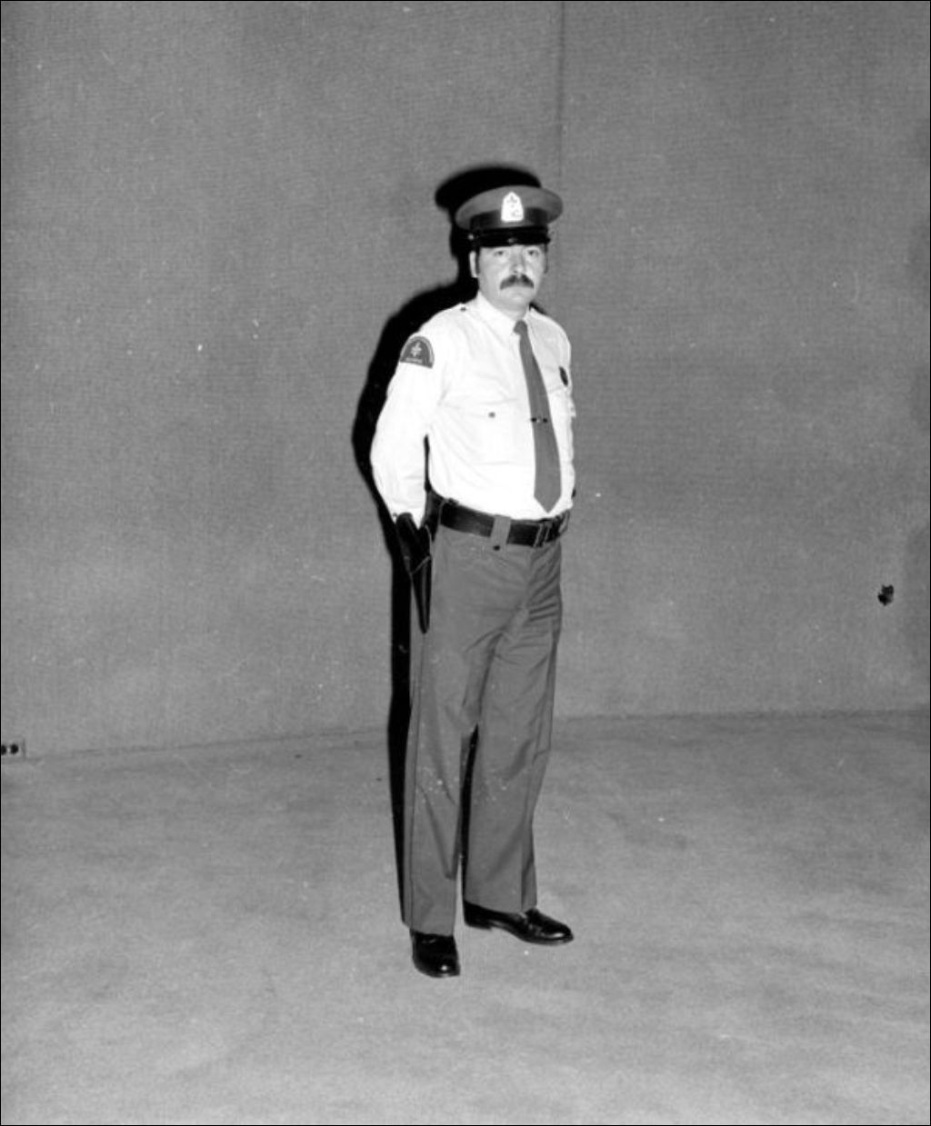 Uniformes des agents de sécurité. Palais de justice. Montréal, 1976, Archives nationales à Montréal, Fonds Ministère de la Culture et des Communications, (06M,E6,S7,SS1,D762328-762336), Claude Gosselin.