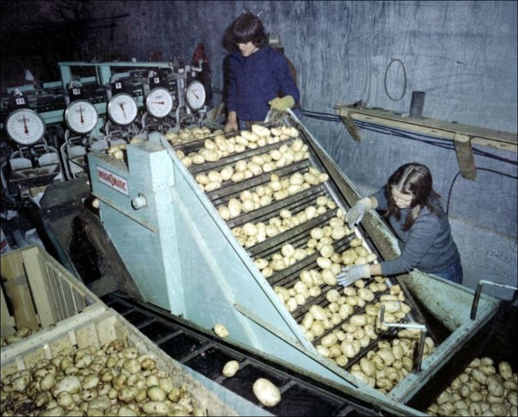 - Les images montrent la récolte puis la sélection des pommes de terre facilitées par une mécanisation des techniques agricoles plus poussée à Sainte-Agathe-des-Monts. Photos demandées par Alain Champoux du Service de l'information du ministère de l'Agriculture