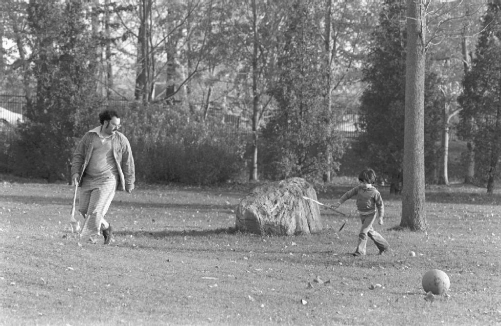 - Enfant jouant au ballon et cycliste. Parc Angrignon. Ville LaSalle
