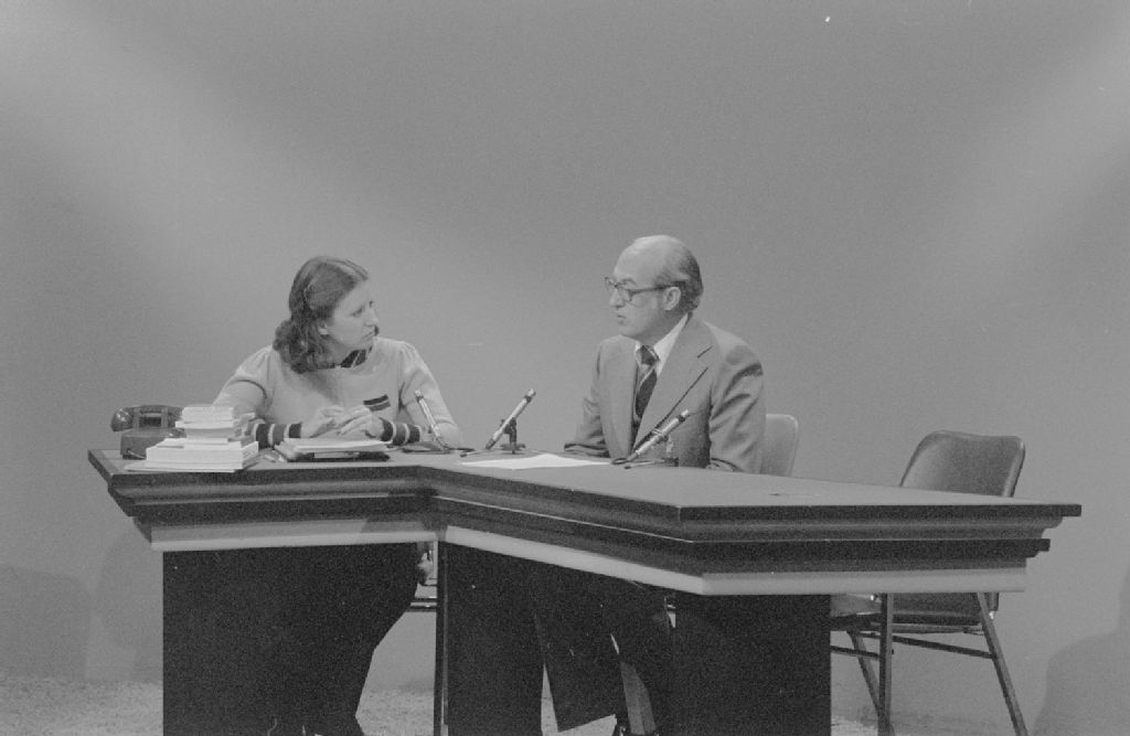 - Charles-Henri Dubé et une journaliste présentent quelques livres aux téléspectateurs. Les clichés réalisés durant l'émission ont été demandés par M. Desjardins du ministère des Communications