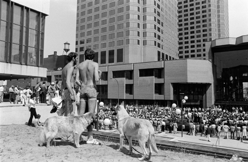 - Guy Lafleur et Steve Shutt signent des autographes. La foule est rassemblée devant le Forum, le Complexe Desjardins et l'Hôtel de ville (Montréal). On voit les chars de la parade de même qu'un avion publicitaire traînant une banderole portant l'inscription «Bravo Canadiens CKVL». Les images ont été réalisées pour Paul Girard du ministère des Communications, Direction générale de l'Édition