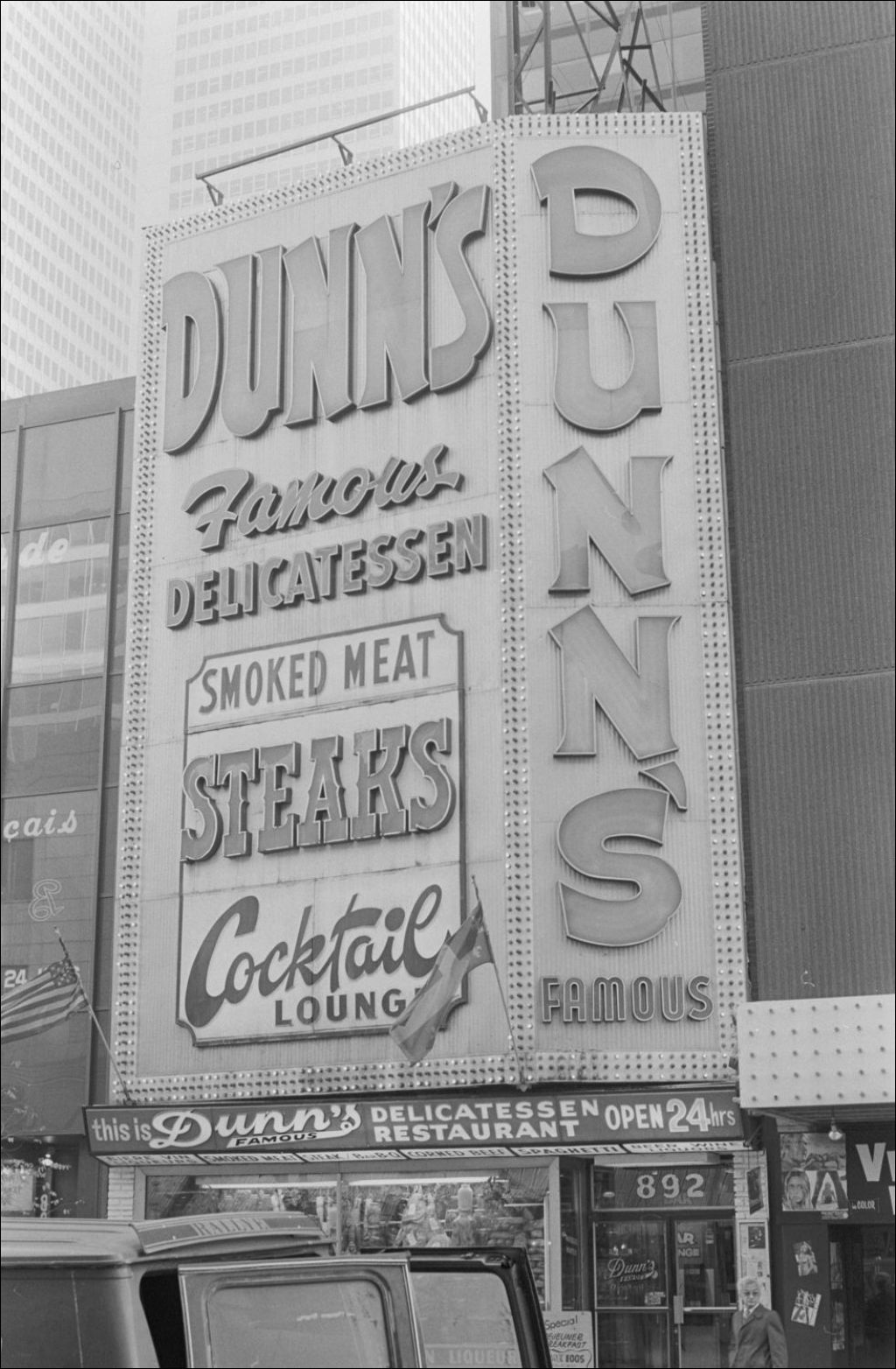 Enseigne du restaurant Dunn's Delicatessen situé au 892, rue Sainte-Catherine ouest, Montréal