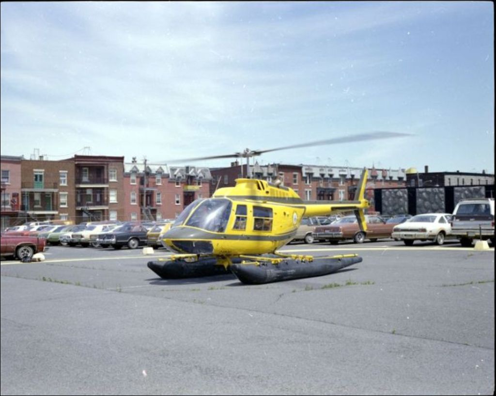 Hélicoptère de la Sûreté du Québec, rue Parthenais. Montréal, 1979, Archives nationales à Montréal, Fonds Ministère de la Culture et des Communications, (06M,E6,S7,SS1,D790012-1-790018-1), Henri Rémillard.