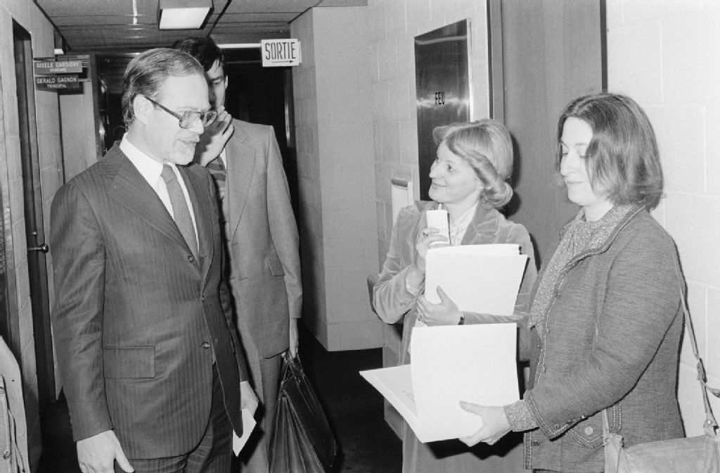 Photos du ministre Jacques-Yvan Morin prises à la polyvalente Hyacinthe-Delorme de Saint-Hyacinthe