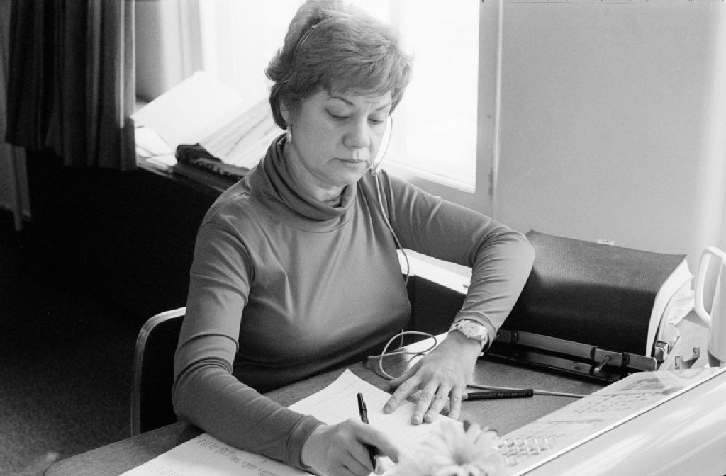 Photos de téléphonistes à leur travail à Inter-Centre, rue Ontario ouest, Montréal, 1979, Archives nationales à Montréal, Fonds Ministère de la Culture et des Communications, (06M,E6,S7,SS1,D790436-790438), Henri Rémillard.