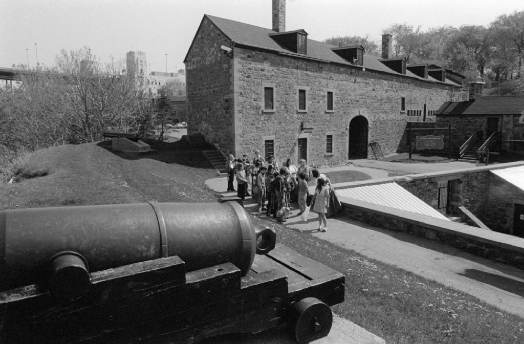 - Les enfants accompagnés des guides sont réunis autour d'un canon puis visitent le musée. On voit aussi certains dessins qu'ils ont réalisés. Clichés commandés par Jules Rochon du ministère des Communications, Direction générale de l'édition