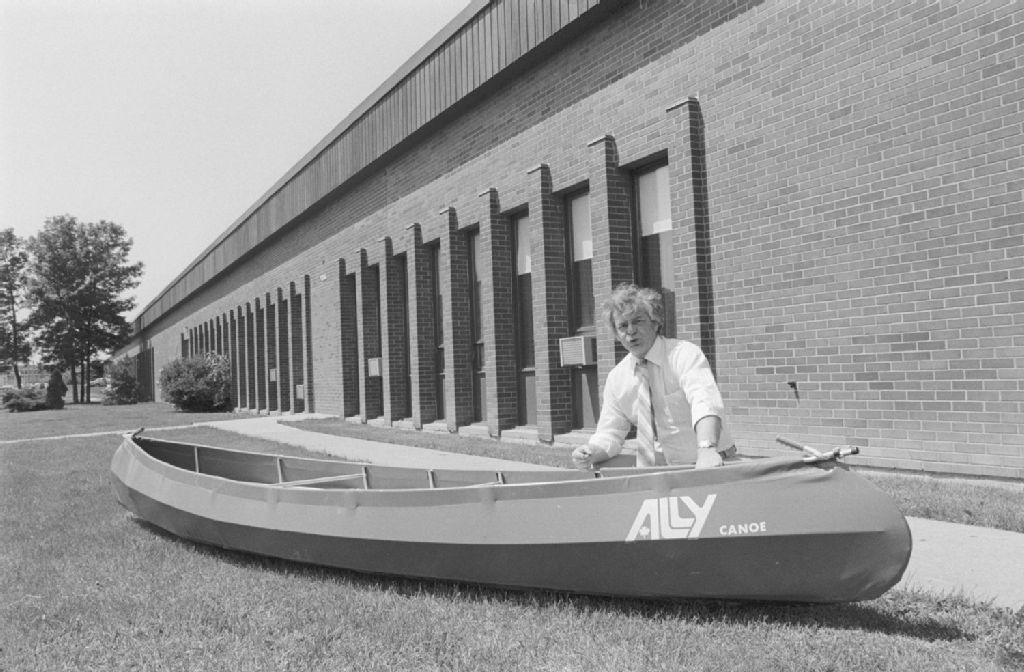 - Un homme est photographié avec une chaloupe. Des employés taillent et cousent une toile de plastique. Clichés demandés par Benoit Aubry du conseil exécutif de l'Opération solidarité économique (OSE)