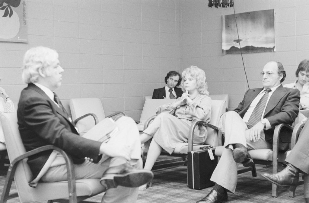 On voit le ministre des Affaires culturelles, Denis Vaugeois en discussion avec des collègues. L'évènement a été photographié pour Michel Vergnes du ministère des Affaires culturelles, cabinet du ministre