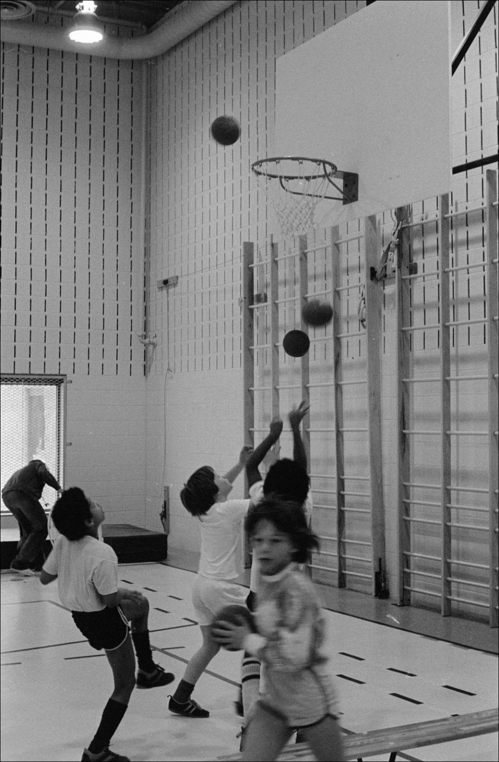 Sur ces images, les élèves travaillent en classe et jouent au basketball au gymnase. Photos réalisées pour Raynald Germain de la Direction de l'équipement du ministère de l'Éducation
