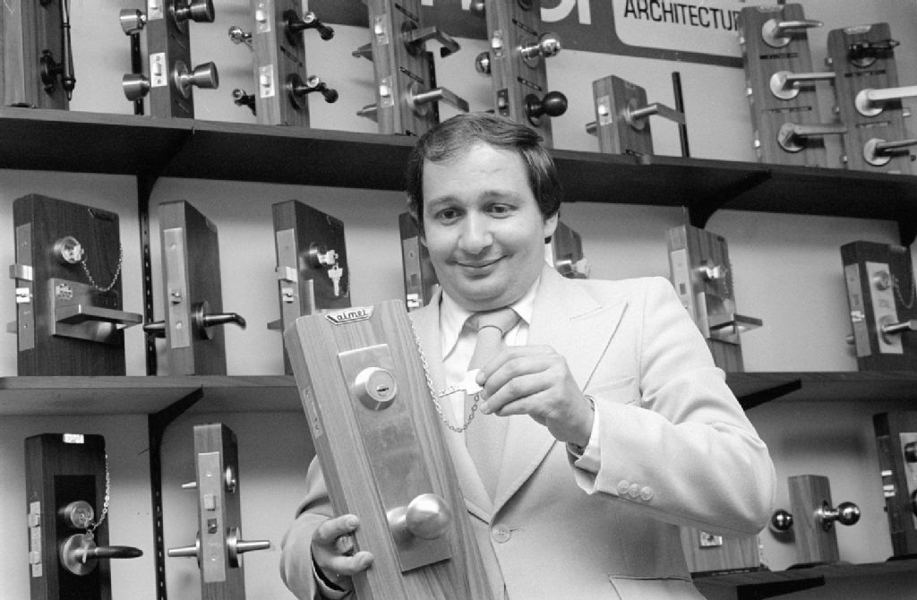 Compagnie de serrures Dom ltée. Boulevard Viau. Saint-Léonard, 1980, Archives nationales à Montréal, Fonds Ministère de la Culture et des Communications, (06M,E6,S7,SS1,D800167-800167), Adrien Hubert.