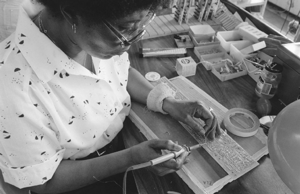 - Les laboratoires, ingénieurs et techniciens de cette entreprise ont été photographiés pour Nicole Boudreault de l'Opération solidarité économique (OSE)