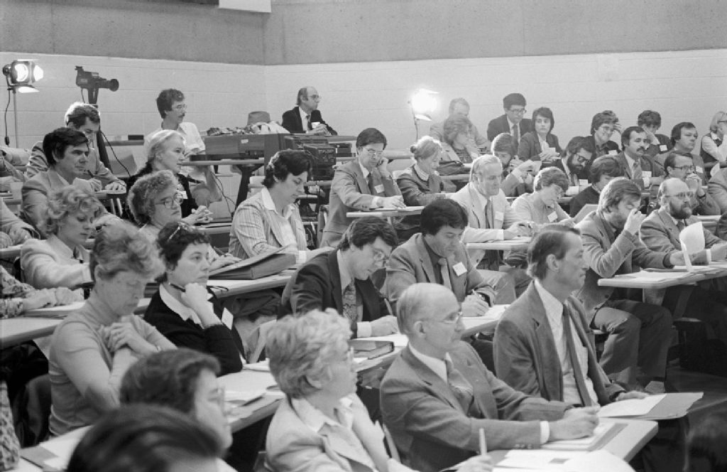 - Conférence portant sur le régime pédagogique à laquelle assiste le sous-ministre, André Rousseau. Ces photographies ont été commandées par Héloïse Hébert du ministère des Communications, Service des communications