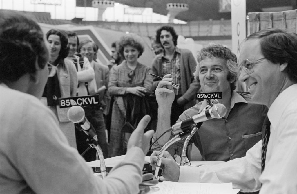 - Conférence de presse pendant laquelle des orateurs prononcent des allocutions. De plus, nous remarquons une carte de la province de Québec identifiant les principales sources d'énergie. Ces images ont été commandées par Jean-Claude Caron du ministère de l'Énergie et des Ressources, Régie de l'électricité et du gaz