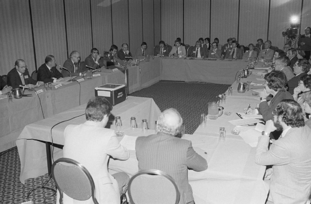 Séminaire des marchés extérieurs avec la Grande-Bretagne. Hôtel Bonaventure, Montréal, 1982, Archives nationales à Montréal, Fonds Ministère de la Culture et des Communications, (06M,E6,S7,SS1,D820027-820029), Adrien Hubert.