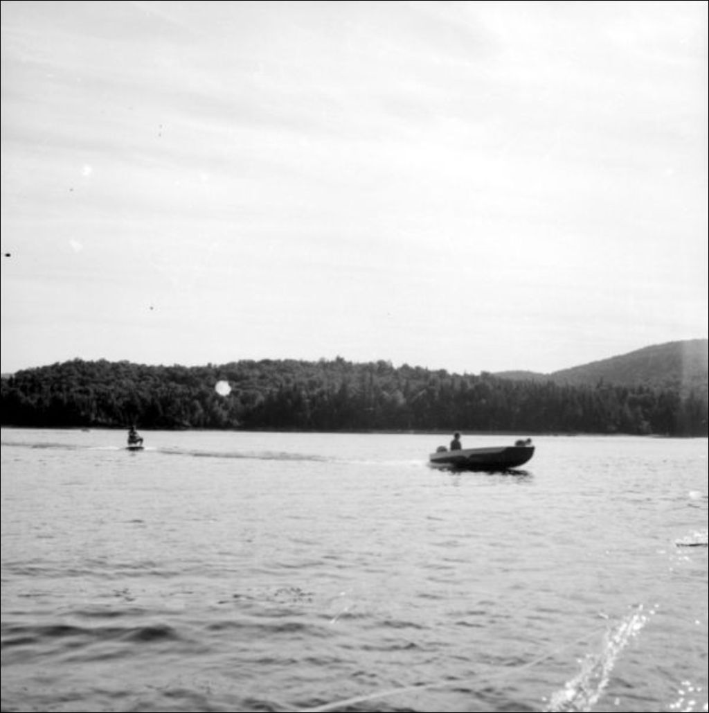 - Des familles profitent des activités balnéaires au camping La Crémaillière du lac Monroe et pratiquent le ski nautique tandis que des enfants nagent sous la surveillance des parents. D'autres plaisanciers admirent la chute du Diable. Dossier commandé par le ministère du Tourisme, de la Chasse et de la Pêche, Service d'aménagement de la faune