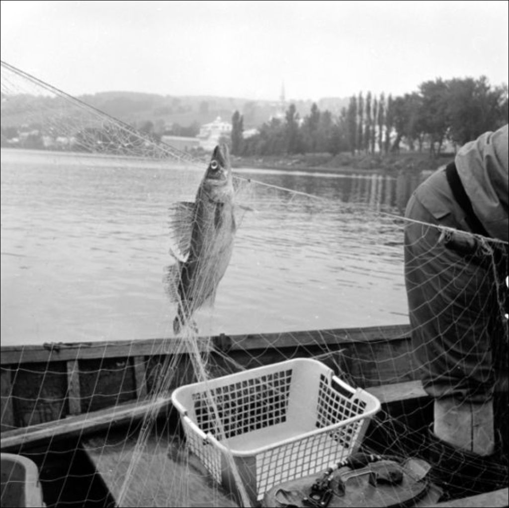 - Il s'agit d'une levée de filets à laquelle participent L. Deschamps et J. R. Mongeau, clercs de Saint-Viateur (63-27-3 et 63-27-4). Les pêcheurs s'adonnent à la pêche au doré (63-27-2), au hareng de lac aussi appelé coregonus artidi (63-27-8) et à la perchaude (63-27-9)