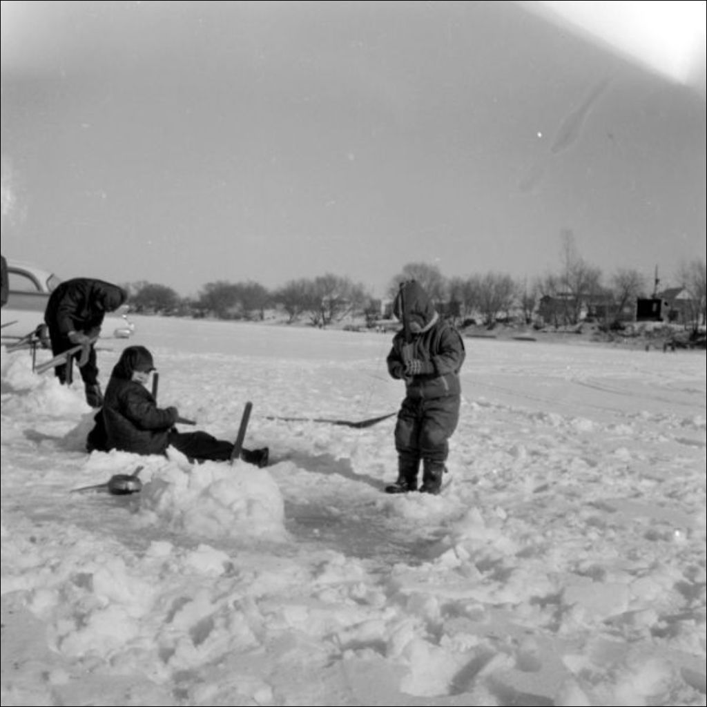 Pêche sous la glace, 2 février 1964, Archives nationales à Montréal, Fonds Ministère de la Culture et des Communications, (06M,E6,S7,SS2,D64-9), Albert Courtemanche.