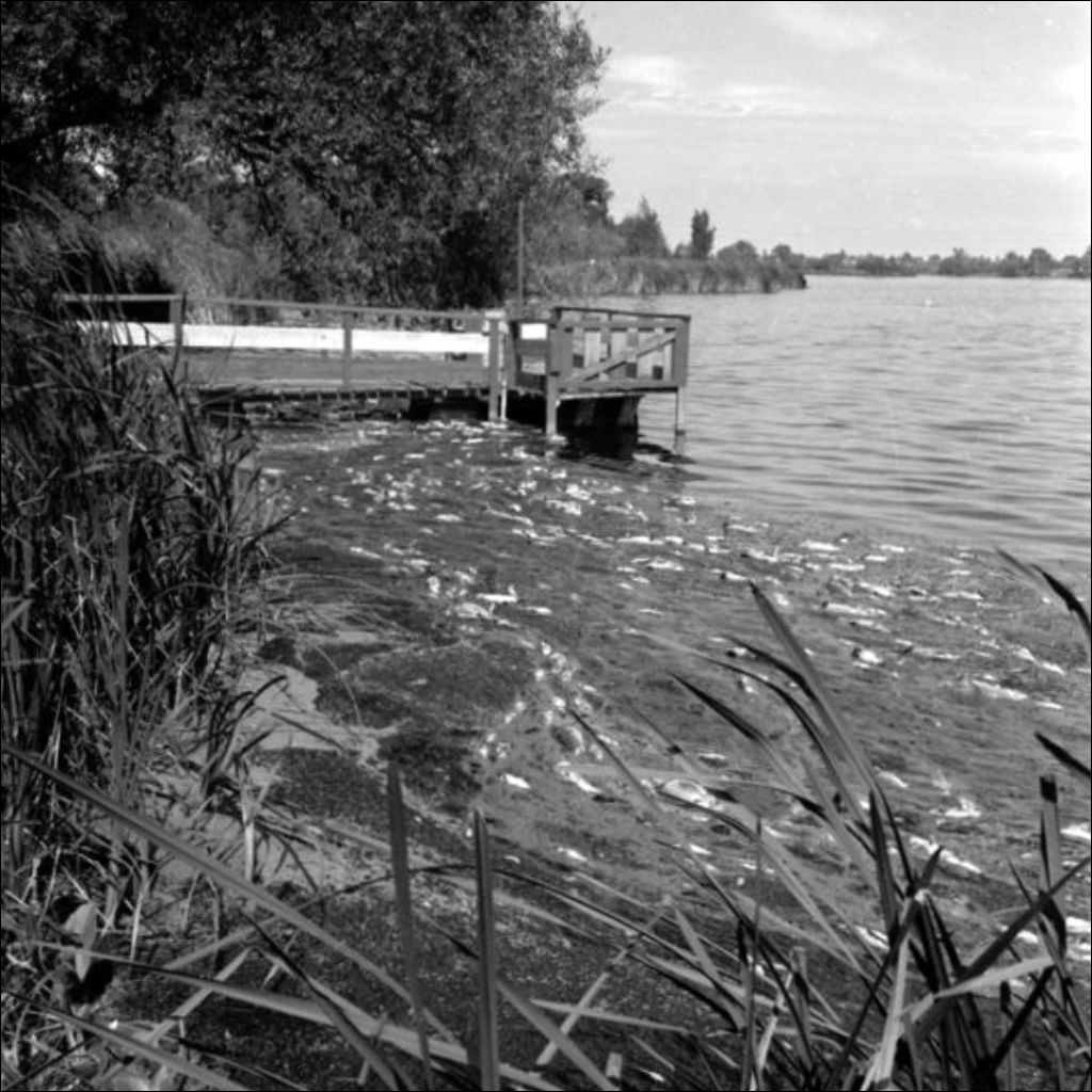 Poissons tués le 11 septembre par le déversement, dans la rivière Saint-Charles, de 13 000 litres de soude caustique. Le responsabilité de ce déversement incombe à la Montreal Cotton Company. Deux espèces sont principalement touchés, soient la perchaude et la carpes noires, 1965, Archives nationales à Montréal, Fonds ministère de la Culture et des Communications, (06M,E6,S7,SS2,D65-29), Albert Courtemanche.